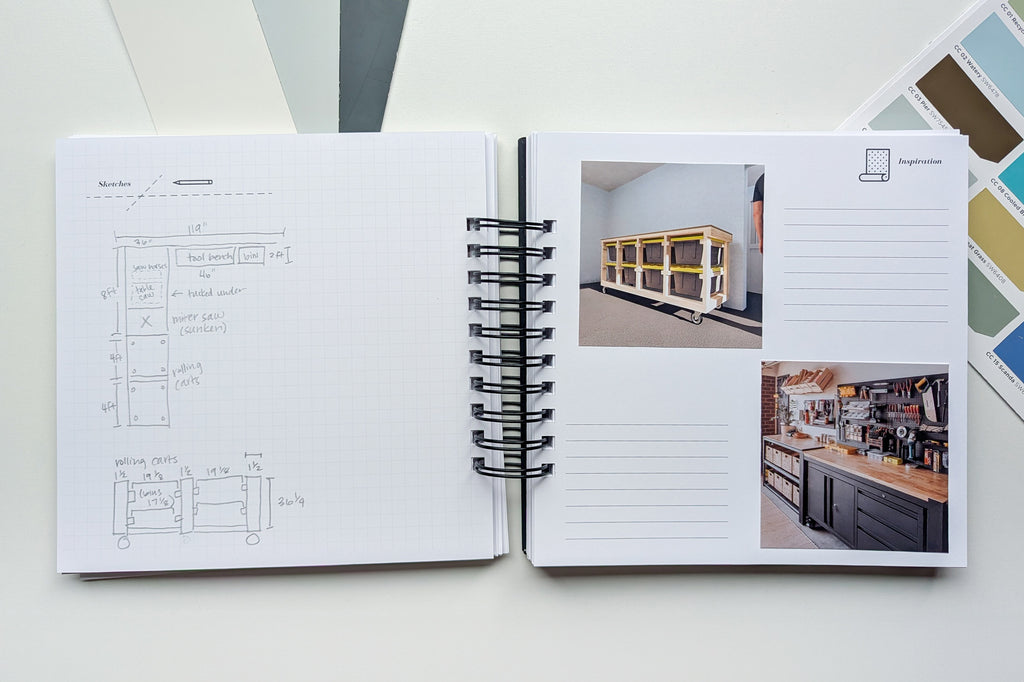 The inside has space for planning 8 home projects, plus a "home paint colors" page with a handy ruler on the edge so you can keep track of all the colors used in your projects and throughout your home. Whether you are just redesigning or ripping out walls and building them back up, the topics included will help you plan!